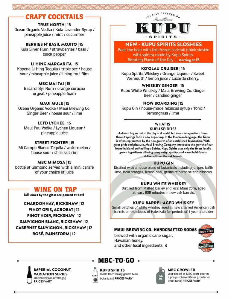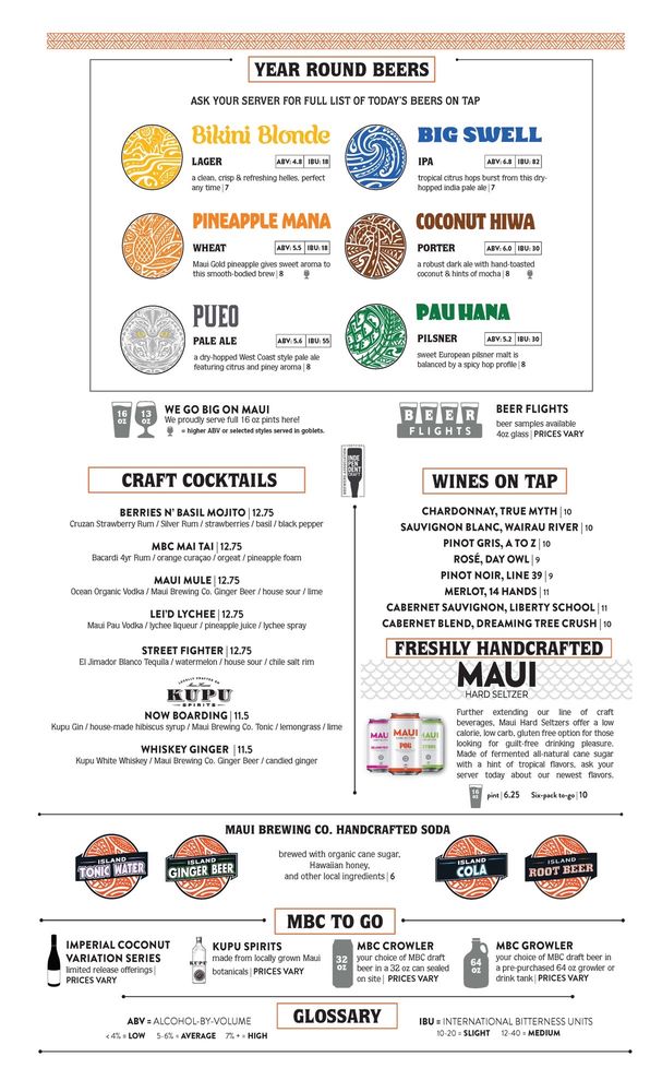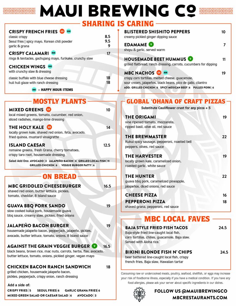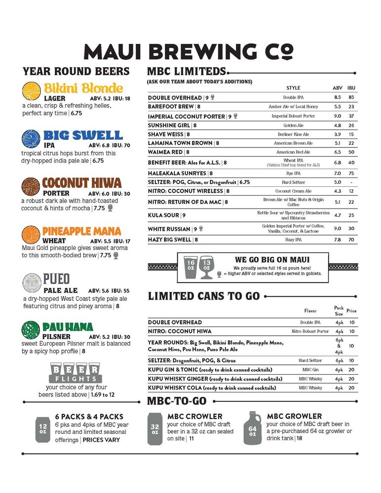 Maui Brewing Co. - Kailua Menu (2025 Update)